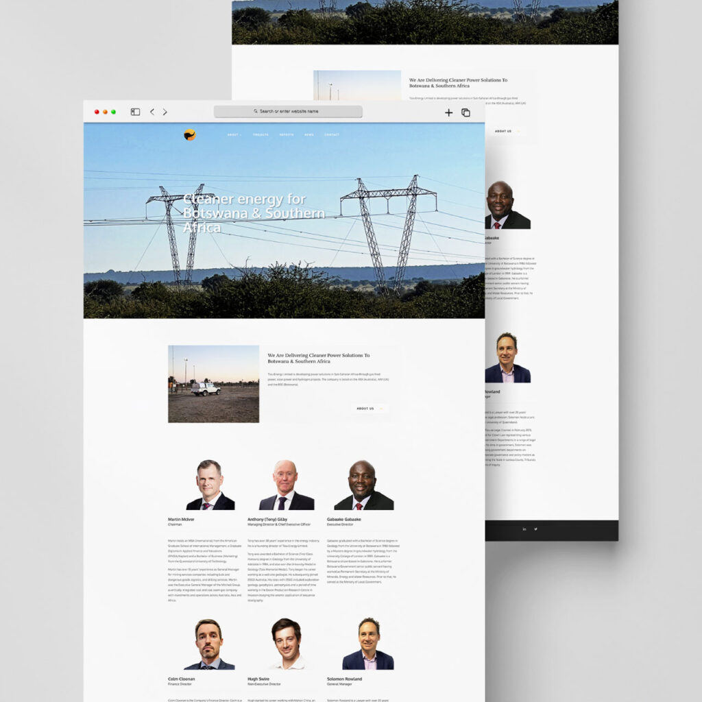 Service Category: WebsitesRequirements: WordPress / DesignClient Locations: YourBotswana (Gaborone, Botswana), CUVECOM (Oshakati, Namibia), Safari Trotter (Maun, Botswana), Tlou Energy (Brisbane, Australia), Tuli Trust (Cheshire, England)